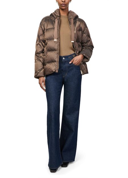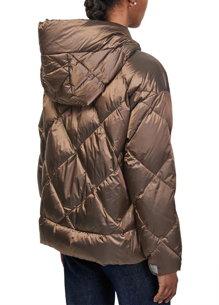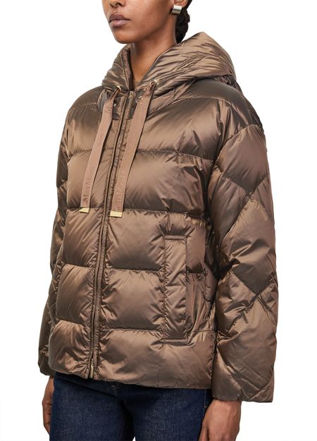 Reveal Max Mara's hooded puffer jacket, a short silhouette with a modern edge. The zipper closure and welt pockets add practical flair, while the diamond pattern and padded texture create a striking look. Perfect for versatile styling, this piece transitions seamlessly from day to night.
