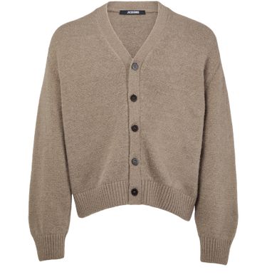 Jacquemus's cardigan showcases a short, long-sleeved silhouette with a front buttoned closure for effortless style. Cuffed sleeves add a touch of sophistication, while the logo at the back subtly highlights the brand's identity. Perfect for layering, this piece effortlessly combines elegance and comfort for any occasion.