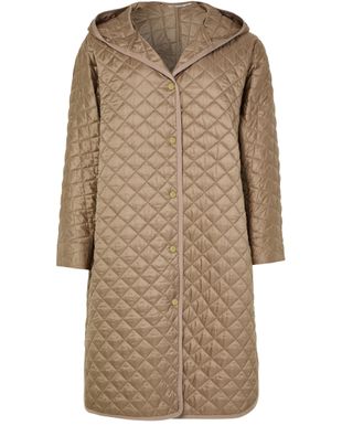 Reimagine Max Mara's Joan coat from THE CUBE. This long-sleeved puffer jacket features a diamond pattern, button fastening, and a hooded neckline, offering a blend of style and functionality. Its padded texture ensures warmth and comfort, making it perfect for both casual and sophisticated occasions.