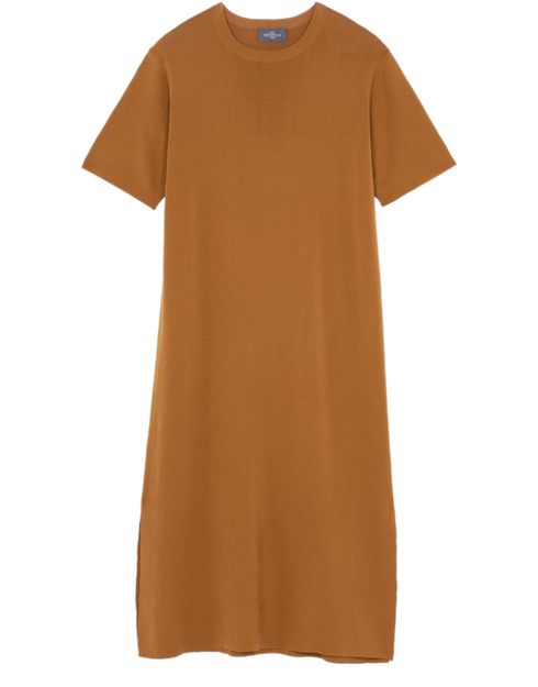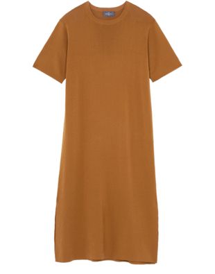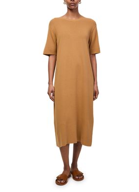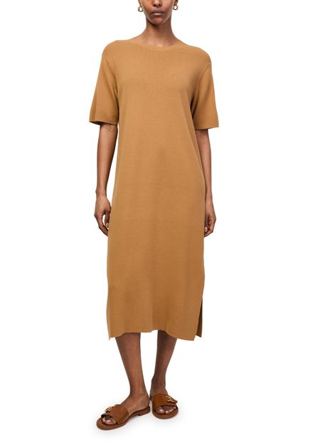 Reveal Bompard's knitted maxi t-shirt dress, featuring a round neck and short sleeves for a refined silhouette. The midi length offers effortless sophistication, while the soft knit texture ensures comfort. Perfect for versatile styling, this piece transitions seamlessly from day to evening with understated elegance.