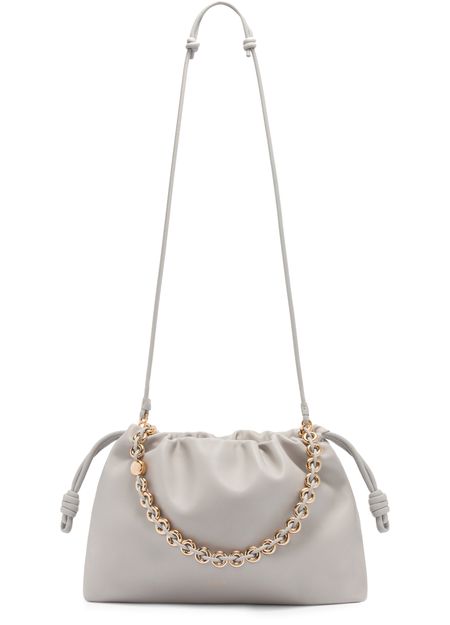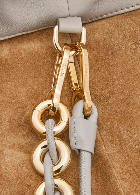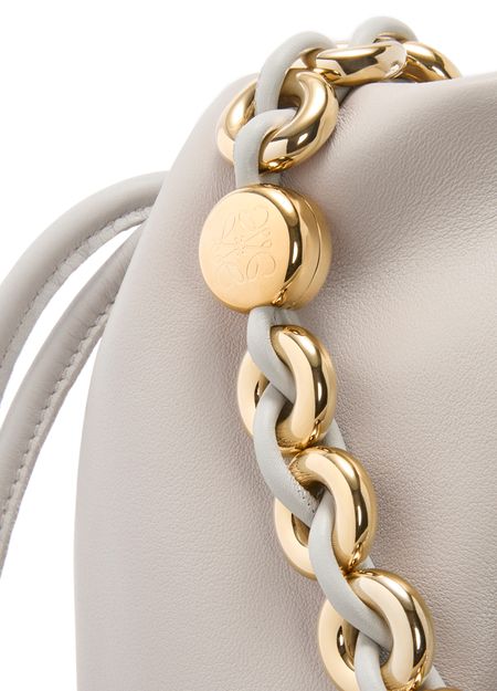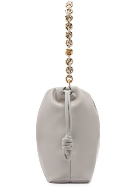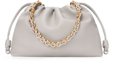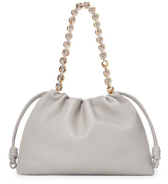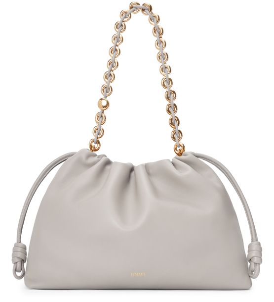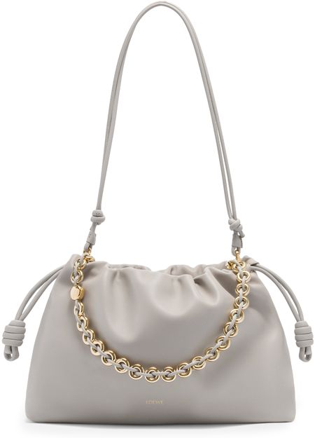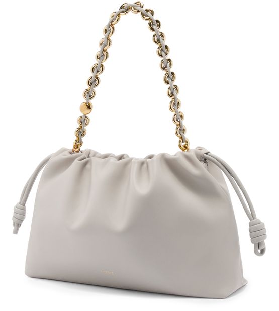 Loewe's Large Flamenco Purse in soft nappa lamb leather boasts a single compartment for effortless organization. Its single handle and detachable strap allow for versatile styling, whether worn on the shoulder or carried by hand. The front logo in gold letters and visible topstitching add a touch of sophistication.