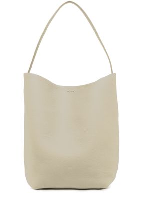 The Row N/S Park Tote large bag is a stylish and practical accessory for any fashion-conscious individual. Made from high-quality embossed leather, this bag features a large interior compartment that can easily accommodate all your essentials. The logo on the front adds a touch of sophistication, while the shoulder strap makes it easy to carry around.