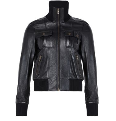 Introducing Chloe's leather jacket, a perfect blend of style and functionality. This bomber jacket features a regular fit and short length, offering a sleek silhouette. Crafted from smooth leather, it boasts a zipper closure and practical flap and side pockets. Ideal for any occasion, it seamlessly transitions from casual to formal.