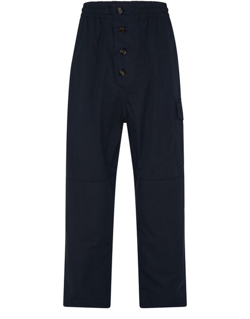 Bottega Veneta's Lightweight cotton twill pants offer a high-waisted fit with a straight cut, perfect for effortless style. Featuring a front buttoned closure, elasticated waist, and side and flap pockets, these ankle-length casual pants showcase visible stitching and the iconic triangle logo, blending comfort and sophistication for any occasion.