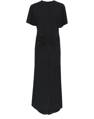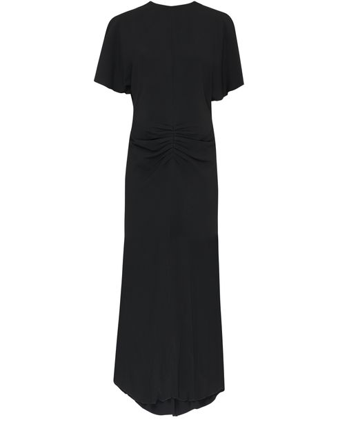 Victoria Beckham's Long dress showcases a refined silhouette with its short-sleeved design and elegant crew neck. The back zipper closure adds a touch of sophistication, making it easy to slip on for any occasion. Effortlessly chic, this dress embodies modern femininity, perfect for a day out or evening affair.