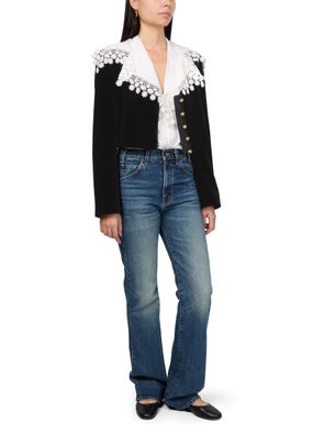 Introducing Chloé's long sleeved shirt, a masterpiece of elegance with its V-neck and floral embroidery. The button fastening adds a touch of sophistication, while the long sleeves ensure a graceful silhouette. Perfect for any occasion, this top effortlessly combines style and versatility.
