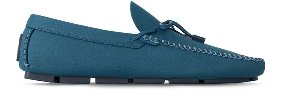 The LV Driver moccasin was the first car shoe designed by Virgil Abloh. This version is crafted from supple, grained calf leather with a tonal lace and LV Initials lace tips for a refined, monochrome look. This model is notable for its hand-stitched vamp and flexible outsole with large rubber pads decorated with the Monogram pattern.