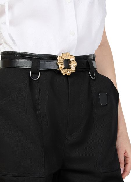 The distinctive design of the LV Venus Belt was inspired by the shell sculptures at Palazzo Borromeo in Isola Bella, the venue for the Cruise 2024 show. Its delicately curved gold-finish buckle is engraved with aquatic lines, plus an LV signature for a subtle House touch. An exceptional, versatile belt for both casual and formal occasions.