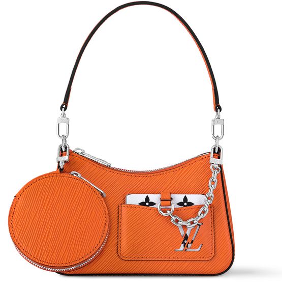 The playful Marellini handbag looks fresh this season in an array of eye-catching colors. Crafted from the Maison’s classic grained Epi leather, this adorably compact model is designed for hand, elbow or shoulder carry. It features a removable round coin purse and – another feminine touch – a Monogram mirror slipped into the front pocket, attached by a silvery chain.