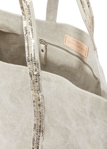 The most summery version of the iconic Vanessa Bruno Cabas Tote launched in 1998, this linen design, both versatile and light, is the ideal companion. Made in France in our workshops located near Paris, this eco-friendly tote bag is made of Belgian linen with BelgianLinenTM certification, which guarantees the European origin of the seeds and local weaving. Presented here in its M version, this glittery...
