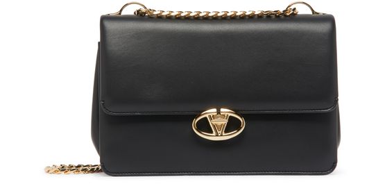 Valentino's Medium shoulder bag with chain is a chic companion for any occasion. Featuring a twist lock closure and flap closure, it showcases a front logo in gold letters. The single handle and chain strap allow for versatile wear, while the zippered interior pocket and visible topstitching add practicality to this stylish mini bag.