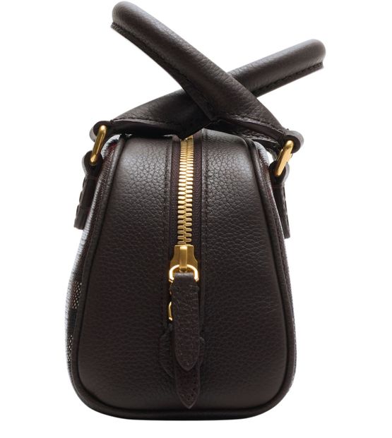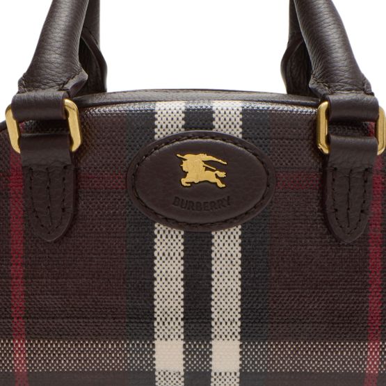 Rooted in the outdoors, Burberry's mini Highlands bowling bag is made in Italy from a cotton linen blend trimmed with smooth calf leather and lined in cotton. The fabric is jacquard-woven with the Burberry Check and has a coated finish inspired by rainwear. The design can be worn crossbody with the detachable strap and is finished with our Knight stamp, an archival motif first seen...