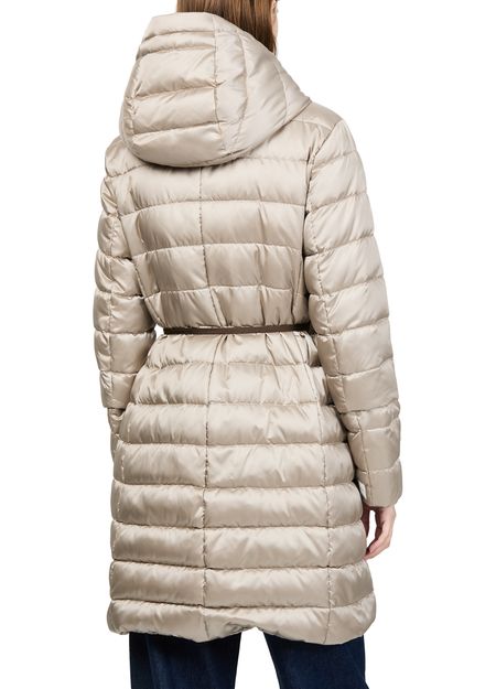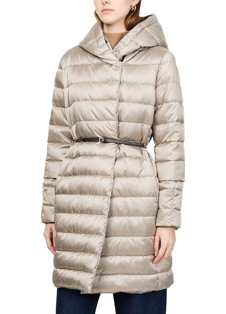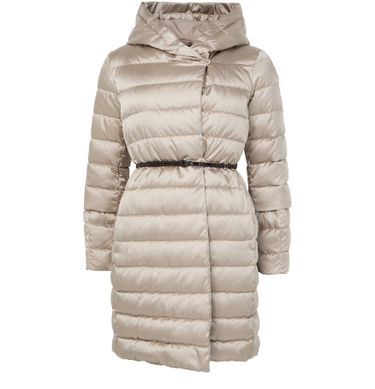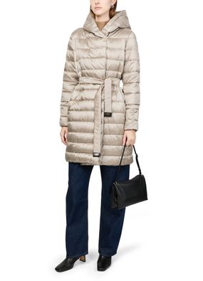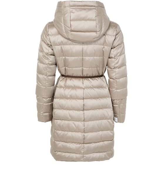 Introducing Max Mara's Novef puffer jacket - THE CUBE, a sleek addition to your wardrobe. Crafted from satin-finish leather, this long-sleeved piece features a high neck and button fastening for a refined silhouette. The padded texture and concealed closure enhance its modern appeal, perfect for versatile styling.