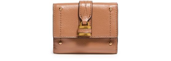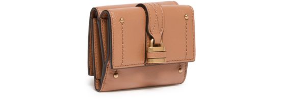 Reveal Chloe's Paddington wallet, crafted from grained leather with signature saddle stitch and contrast stitching. The gold clasp and snap-button fastening add a refined touch, while the front engraved logo and single compartment offer both style and practicality for your essentials.