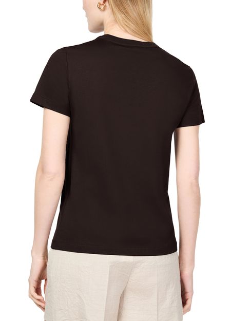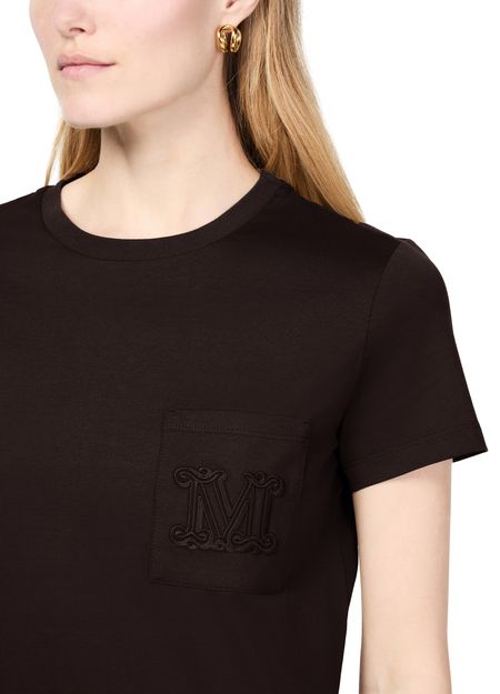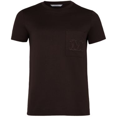 Max Mara's Papaia logo t-shirt combines style and practicality with its short-sleeved, crew neck design. The printed logo and appliquéd logo add a touch of sophistication, while the visible stitching enhances its quality. Featuring a convenient breast pocket and patch pockets, this regular length t-shirt is perfect for effortless chic.