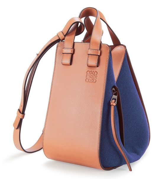 Mixing the authenticity of leather with the delicacy of fabric, this small Hammock bag charms women with its characterful design by Loewe, part of the Paula's Ibiza capsule collection.