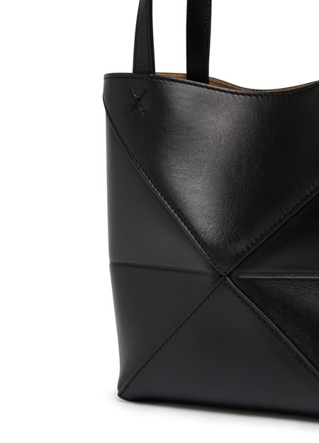 Loewe's Puzzle mini tote bag is a chic accessory made from smooth leather with visible stitching details. It features a front logo, perfect for adding a touch of luxury to any outfit. This mini bag can be worn in the hand for a sophisticated and elegant look.