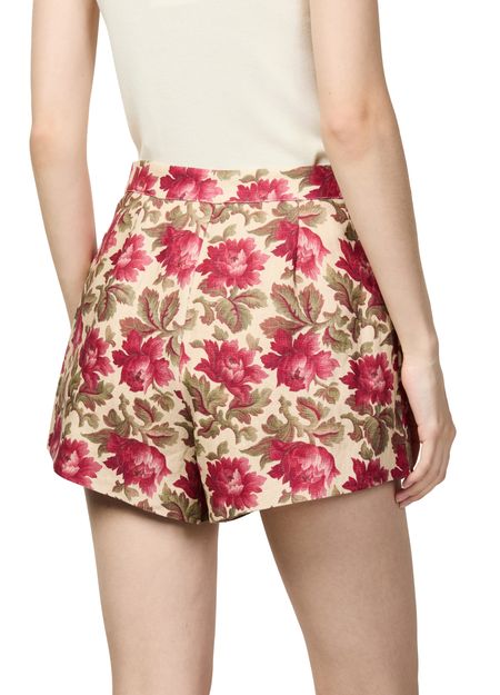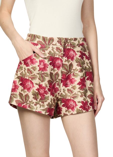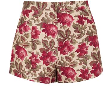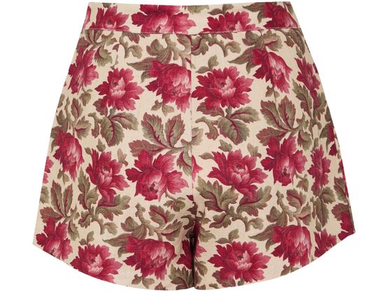 • Description : floral print, concealed zipper closure, visible stitching, back darts, short length, low-waist fit.