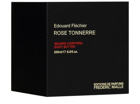 UNE ROSE BECOMES ROSE TONNERRE Frédéric Malle’s body butters melt into your skin. Applying the butter is a fusional experience in which your body and your perfume become one. Rose Tonnerre, our collection’s most potent perfume, contains an abundant amount of Turkish Rose essence, merged with patchouli and lots of vetiver. It reveals some darker notes among which you might detect truffle—a most unexpected alliance creating the deepest sensuality.