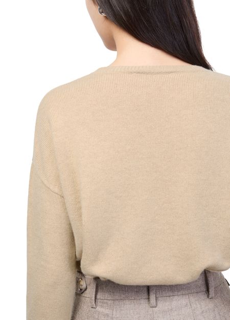 Reveal Max Mara's round neck sweater, featuring a round neck and long sleeves for a refined silhouette. The ribbed texture and visible stitching add modern flair, while the front logo and shimmering sequin details make this piece perfect for elevating both casual and sophisticated looks.