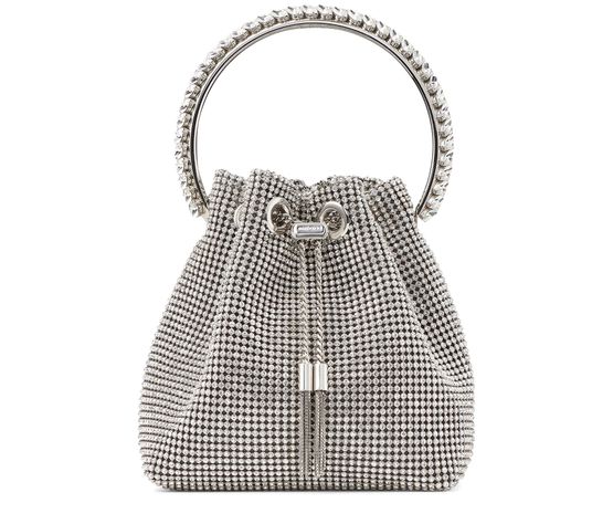Jimmy Choo's Satin Bon Bon bag with crystals exudes luxury and sophistication. Crafted from shimmering satin, this exquisite evening bag is adorned with dazzling crystals for a glamorous touch. The delicate chain strap adds a feminine finish, making it the perfect accessory for special occasions. Elevate your look with this stunning piece.