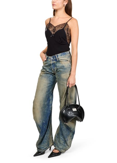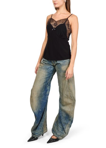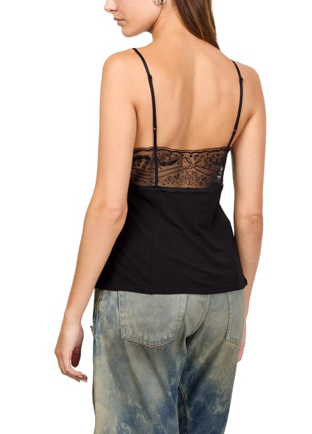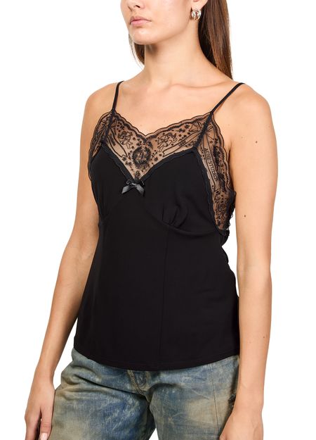 Introducing Acne Studios' sleeveless lace top, a perfect blend of modern style and comfort. This V-neck tank is designed to accentuate your silhouette with its elegant lines and sleek cut. Perfect for layering or standalone wear, it pairs effortlessly with any ensemble, bringing a touch of sophistication to your wardrobe.