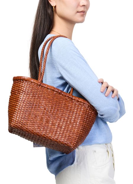 Reveal Dragon Diffusion's small B.weave handbag, a refined tote designed with double handles for effortless sophistication. The intricate weave and thoughtful structure offer both style and practicality, making this piece a standout accessory for modern wardrobes.