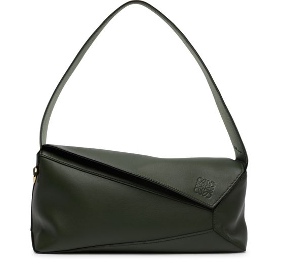 Famous and timeless, Loewe's Hobo Puzzle bag is presented in an elegant smooth leather version. Its modern design is embellished in discreet gold for added refinement.