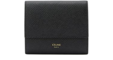 Crafted in grained calfskin leather by the House of Celine, this small wallet with a flap offers plenty of storage space coupled with an elegant design with golden finishing touches.