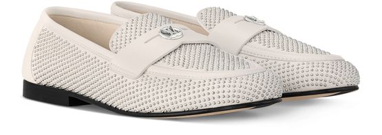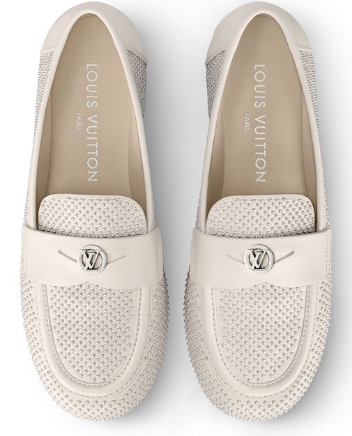 The Soho flat loafer is reinterpreted this season in supple lambskin, which is decorated with dozens of tiny, silver-toned studs. This refined model is distinguished by its sleek lines, rounded toe and cut-out strap, which is signed with an LV Circle accessory. A fine leather outsole completes this design.