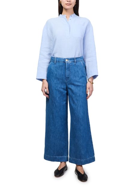 Reveal S Max Mara's straight-cut jeans, crafted with a concealed zipper closure and ankle-length silhouette. Belt loops and topstitched edges add refined detail, while the logo at the back and back patch pocket offer a signature touch. Versatile and comfortable, these jeans elevate any modern wardrobe.