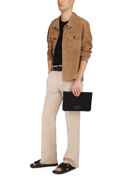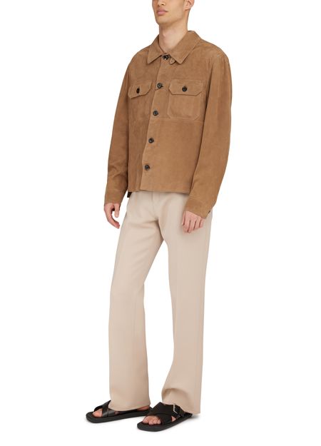 Tom Ford Distribution's Suede overshirt features a loose fit and a classic collar, perfect for a relaxed yet sophisticated look. It has long sleeves and buttoned fastening, along with practical breast pockets. This versatile piece can be dressed up or down for a variety of occasions, adding a touch of timeless style to any outfit.