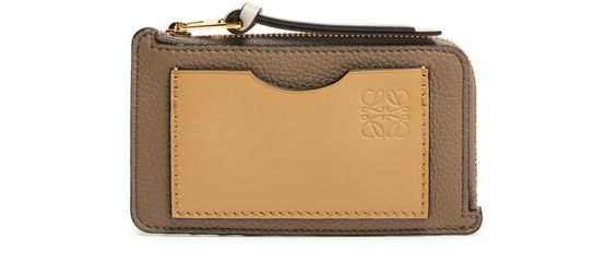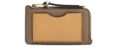 Reveal Loewe's coin cardholder in soft grained calfskin, featuring the iconic Anagram medallion and a refined padded texture. The sleek design includes a secure zipper closure, visible stitching, and interior slots for cards, all finished with an embossed logo for a sophisticated touch.