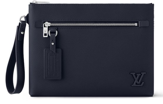 This Takeoff Pouch is made from LV Aerogram leather with palladium-toned hardware, notably the zipper on the front pocket. Large enough to hold a tablet, this lightweight pouch is perfect for everyday use. The zipped main compartment has two card slots. It can be carried with its detachable wrist strap or like a clutch.