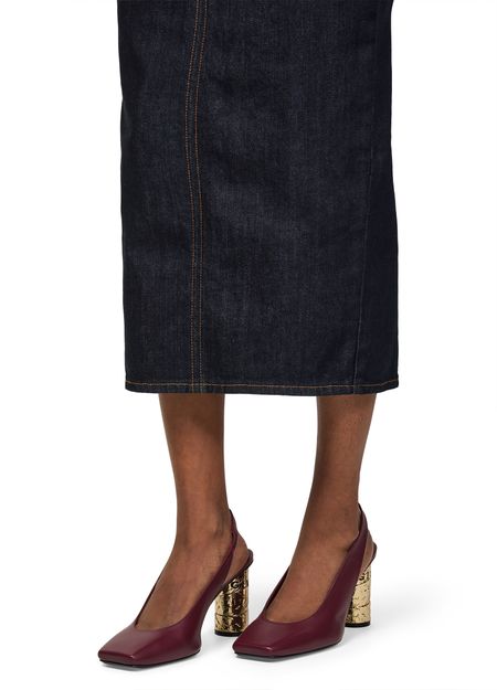 Reveal Givenchy's square toe pumps, crafted from smooth leather with a striking gold finish. The high block heel and ankle strap closure offer both stability and style, while the logo heel adds a signature touch. Experience refined sophistication in every step with these closed-toe essentials.