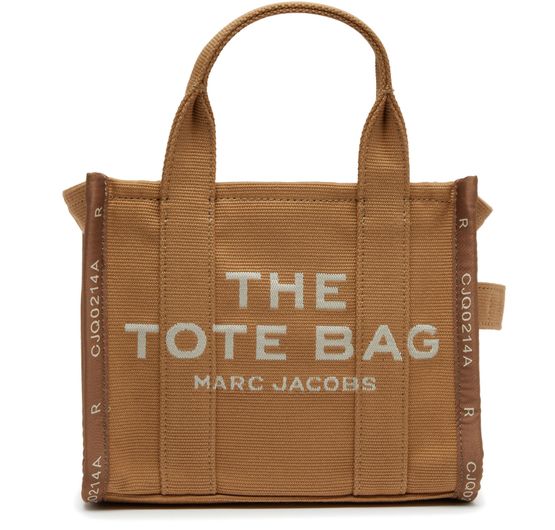 The Marc Jacobs The Jacquard Small Tote Bag features two handles and a shoulder strap with a height of 11 cm and 69 cm respectively. It showcases visible stitching and a front logo, along with a jacquard logo at the back. The bag offers a single compartment for storage. This silhouette is intended to fade and relax over time for an authentically broken-in look that...