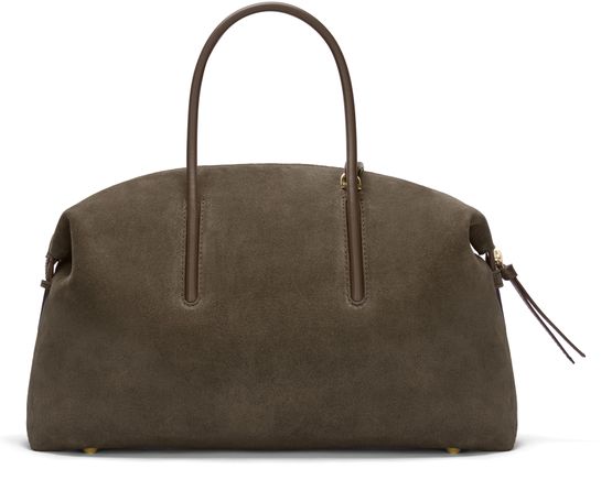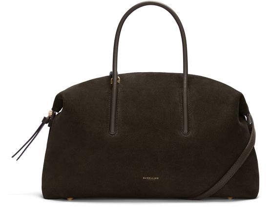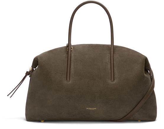 Reveal Demellier's The Midi Stockholm handbag, crafted from grained leather with double handles for versatile carrying. The spacious interior compartment and interior pocket offer practical organization, while the gold finish and embossed front logo add a refined touch. Zipper closure and visible topstitching complete this modern shoulder bag.