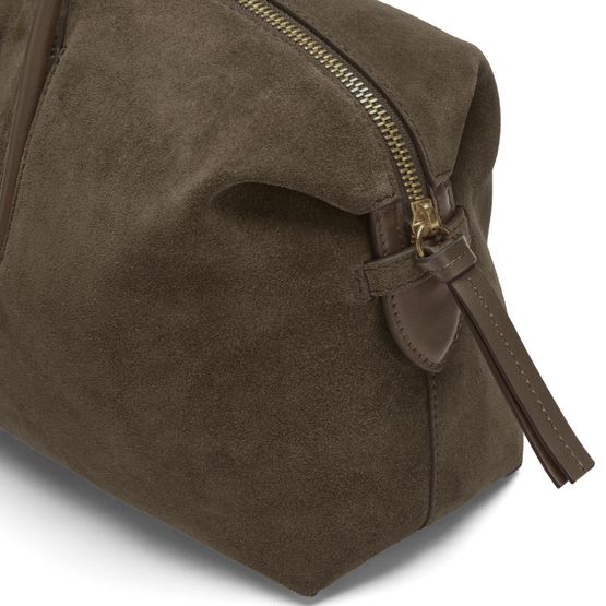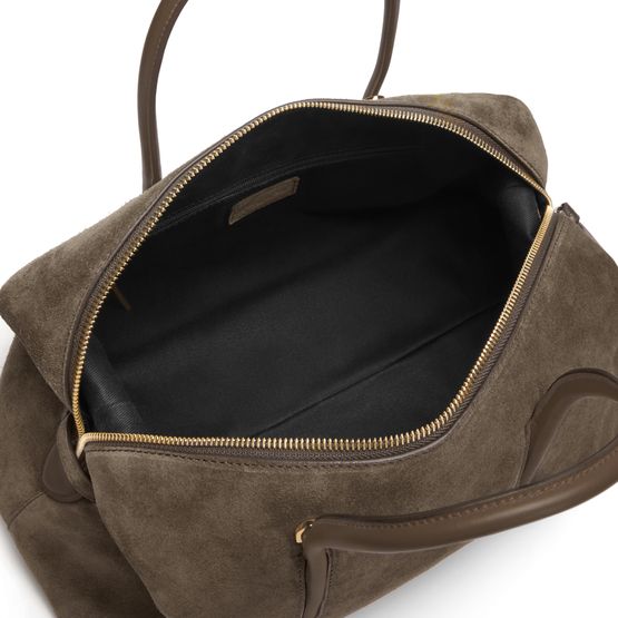 • Description : Shoulder bag, double handles, leather handle, carry handle, front logo, embossed logo, grained leather, zipper closure, interior pocket, visible topstitching.