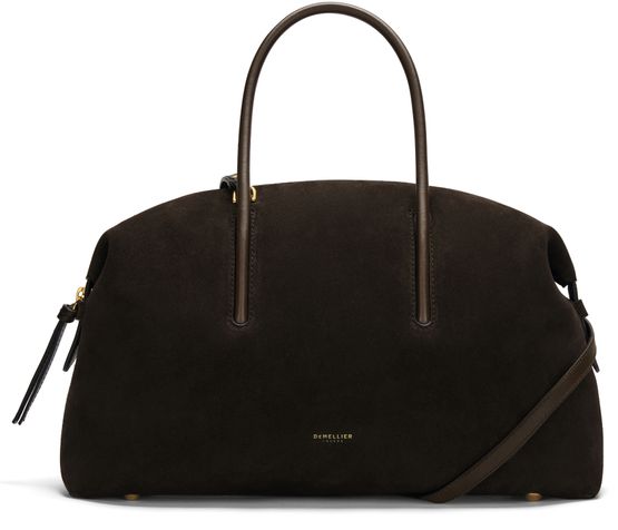 Reveal Demellier's The Midi Stockholm handbag, crafted from grained leather with double handles for versatile carrying. The spacious interior compartment and interior pocket offer practical organization, while the gold finish and embossed front logo add a refined touch. Zipper closure and visible topstitching complete this modern shoulder bag.