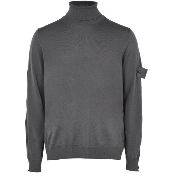 Reveal Stone Island's turtleneck sweater, crafted in a ribbed knit for a refined texture. The long, cuffed sleeves and rollneck design offer a sleek silhouette, while the subtle logo on the side adds a signature touch. Perfect for layering or standalone style in any modern wardrobe.