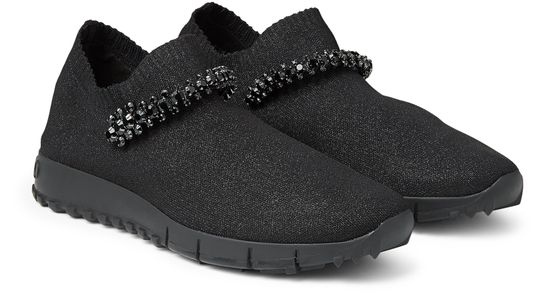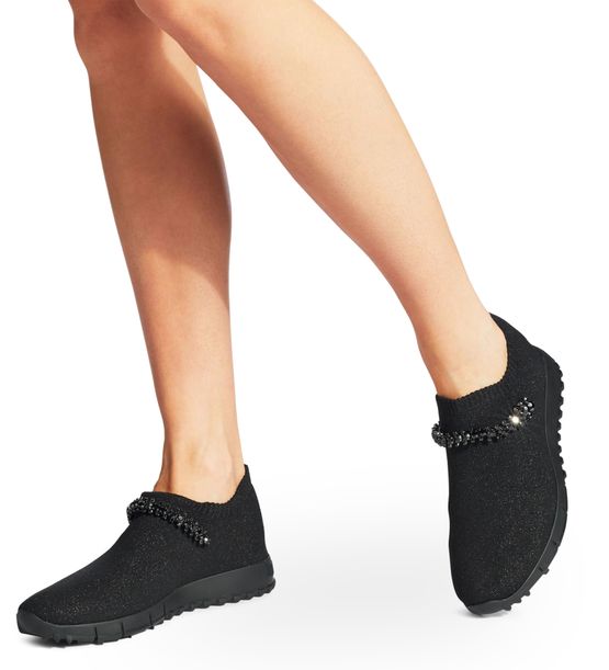 Jimmy Choo's Verona sneakers feature a thick, notched sole for extra traction and comfort. The signed rubber sole adds a touch of luxury to the casual design. The logo on the heel adds a subtle branding detail. With visible stitching throughout, these sneakers are a stylish and versatile choice for everyday wear.