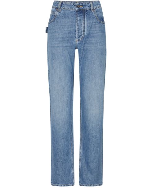 • Description : logo at the back, ankle length, buttoned and concealed zipper closure, five-pocket style, side pockets, back patch pocket, belt loops, high-waisted fit.