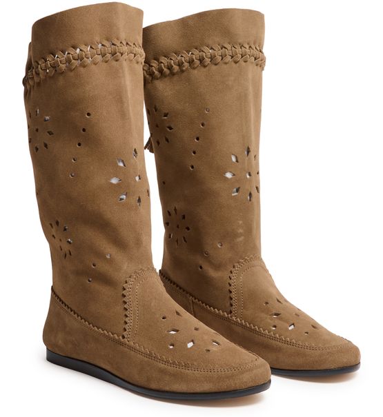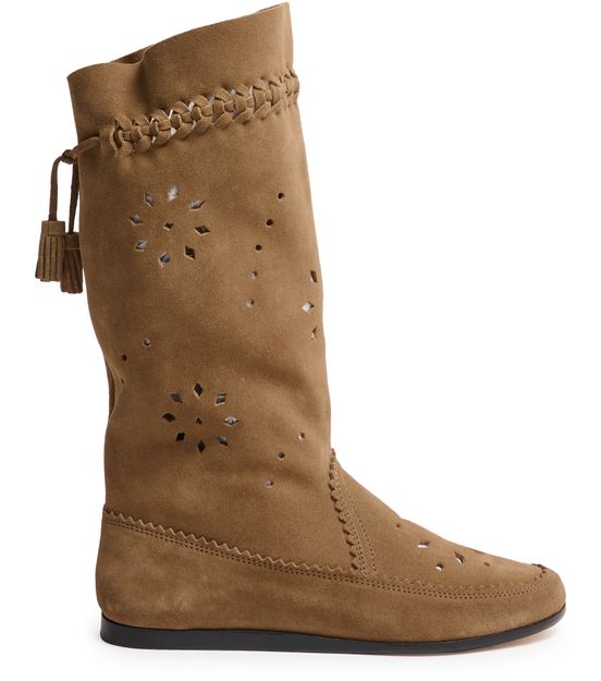 Reveal Isabel Marant's Welky ankle boots, crafted from supple suede with a refined round toe and closed design. The flat heel and very thin sole ensure comfort, while visible stitching, graphic cut-outs, and tassel details add a distinctive, modern edge to this standout pair.