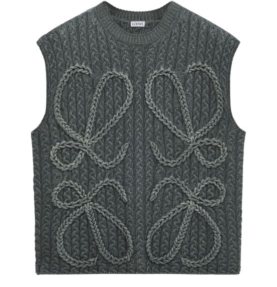 Reveal Loewe's crop ribbed knit top, featuring a crew neck and sleeveless silhouette for a modern edge. The front showcases an embroidered logo, adding a refined touch. Its versatile design pairs effortlessly with high-waisted trousers or skirts, making it a standout piece for any occasion.