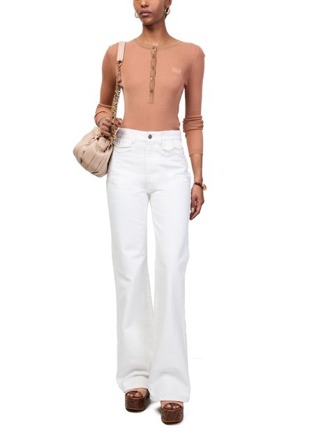 Reveal Chloe's wool sweater, designed with a round neck and long sleeves for a refined silhouette. The button fastening adds a modern touch, while the soft texture ensures comfort. Perfect for layering or wearing solo, this sweatshirt transitions effortlessly from day to night.