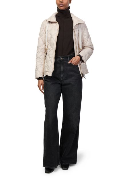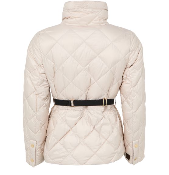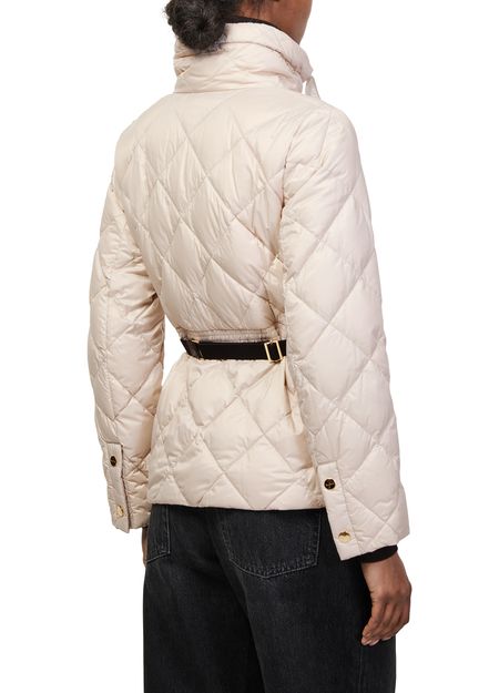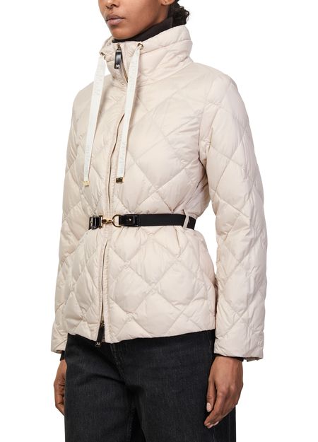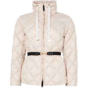 Reveal Max Mara's zip-up puffer jacket, crafted from smooth leather with a diamond pattern and padded texture. The short, long-sleeved silhouette features a high neck and zipper closure, finished with topstitched edges. Lined for comfort, this versatile piece transitions seamlessly from casual to elevated looks.