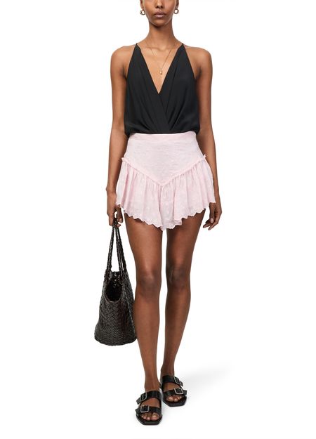 Introducing Isabel Marant's Zoelia shorts, a perfect blend of style and comfort. These high-rise shorts feature exquisite all-over embroidery and delicate lace details. The scalloped edges add a touch of elegance, making them ideal for casual outings or warm-weather styling.