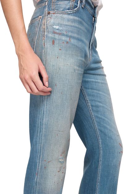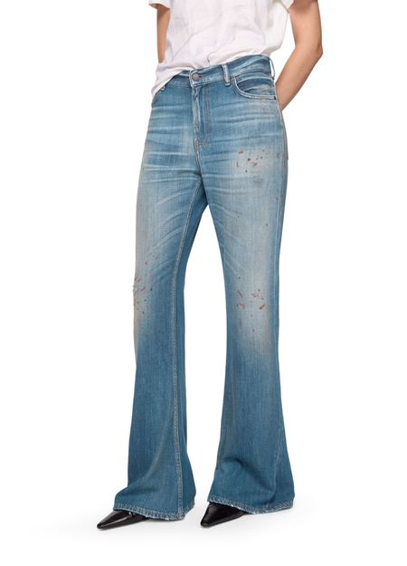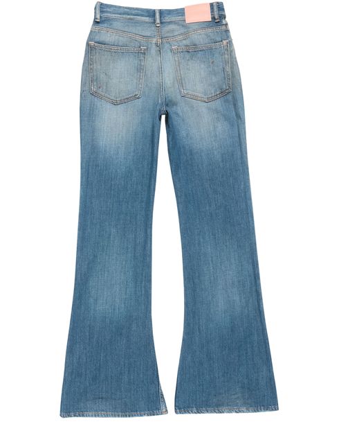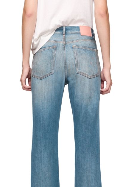 Reveal Acne Studios's faded denim bootcut jean, crafted with a buttoned zipper closure and ankle-length silhouette. Visible stitching and belt loops add refined detail, while two front pockets and a back pocket offer everyday practicality. This versatile piece blends comfort and modern style for effortless dressing.