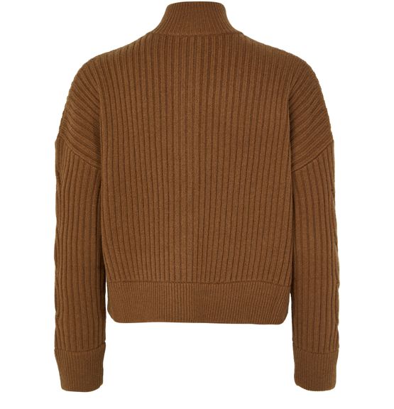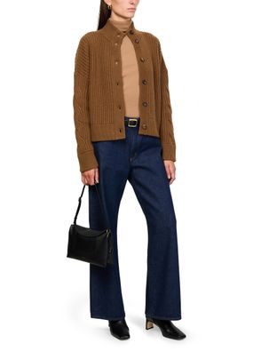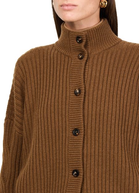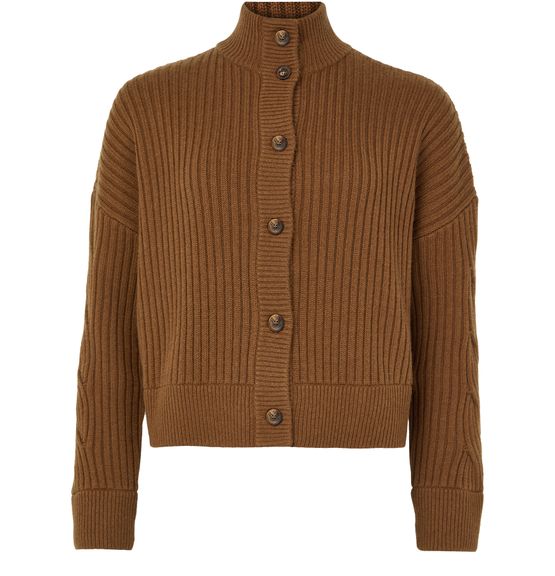 Reveal Max Mara's Afelio cardigan, a modern knitwear piece with a mockneck and dropped sleeves. The button fastening and regular fit offer a sleek silhouette, while the ribbed texture adds a touch of sophistication. Perfect for layering, this cropped design effortlessly complements any ensemble.