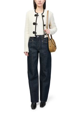 Unveil Isabel Marant's Altay small crossbody bag, a masterpiece in suede. This elegant piece features a thin, adjustable strap and a flap closure with a gold clasp. The visible stitching and engraved logo add a touch of sophistication, making it a must-have for any fashion-forward wardrobe.